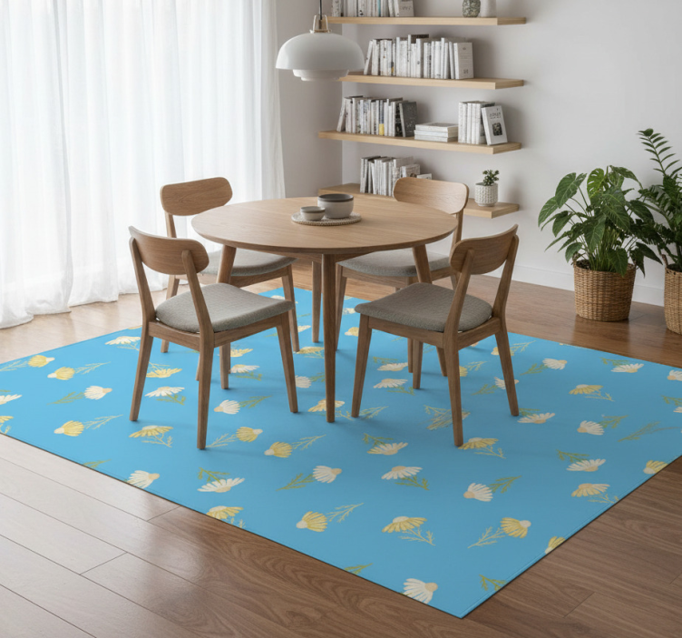 資訊 乙烯基花草地毯,雏菊图案蓝色背景