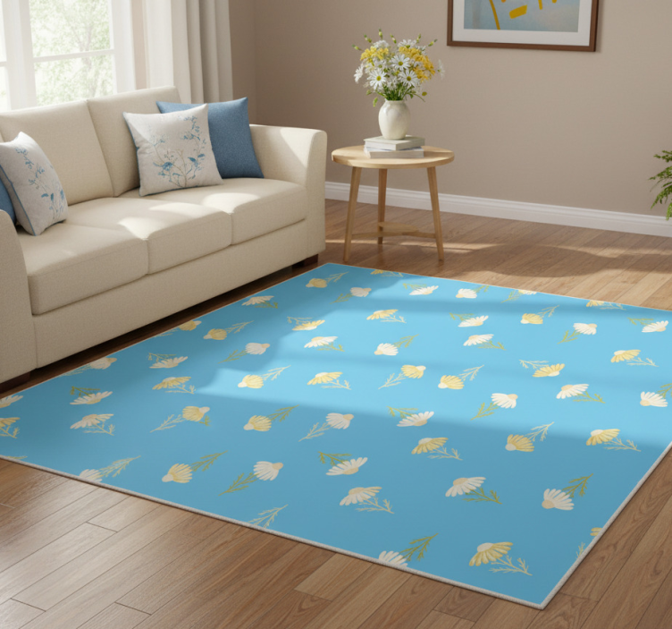 乙烯基花草地毯,雏菊图案蓝色背景