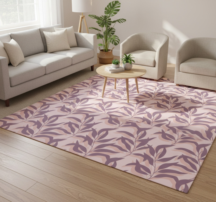 该设计呈现出复杂流畅的叶子图案,色调为不同深浅的紫色,背景为柔和的粉色。这些叶子优雅地交织在一起,形成和谐的视觉节奏。整体美感既优雅又温馨,适合多种场合。