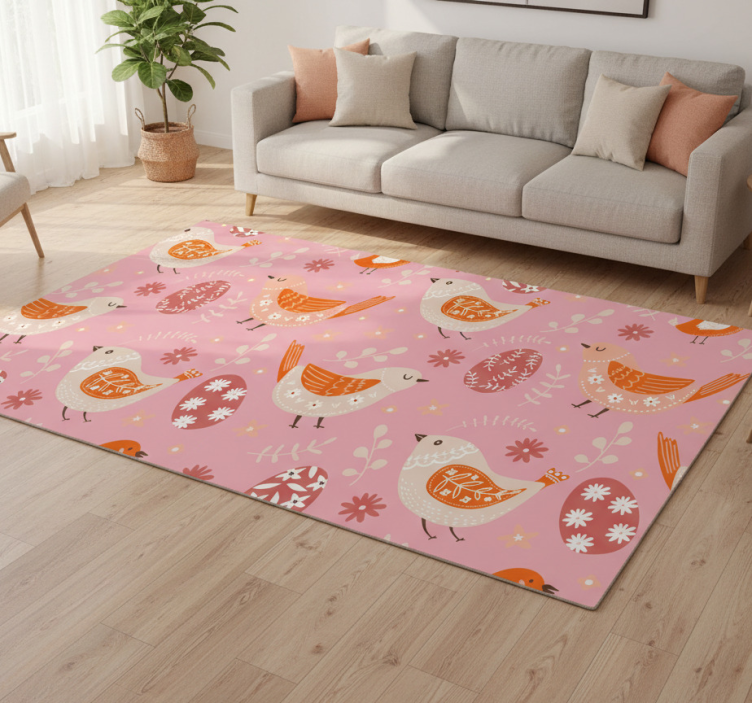 维护这款floral vinyl rug非常简单!只需用湿布擦拭或吸尘器清理即可。它的表面防污设计确保了乙烯基花草地毯的清洁方便,让您轻松保持家中的卫生与美观。同时,粉色民俗艺术鸟类图案也不易褪色,确保持久如新。