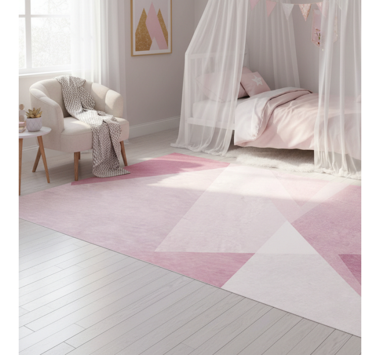 各种几何形状的组合,呈现柔和的粉色和珊瑚色,巧妙融合,创造出动态的视觉效果。设计中包含重叠的三角形和多边形,渐变色增强了光与影的交互,形成了一种温柔而引人入胜的美感。