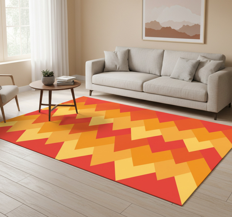 这幅图像展示了一个生动的设计,由红色、橙色和黄色的交错锯齿图案组成。这种几何排列营造了一种运动和能量的感觉,每种颜色无缝地流入下一种。交替的色调增强了视觉冲击力,吸引人们注意形状之间的有趣互动。
