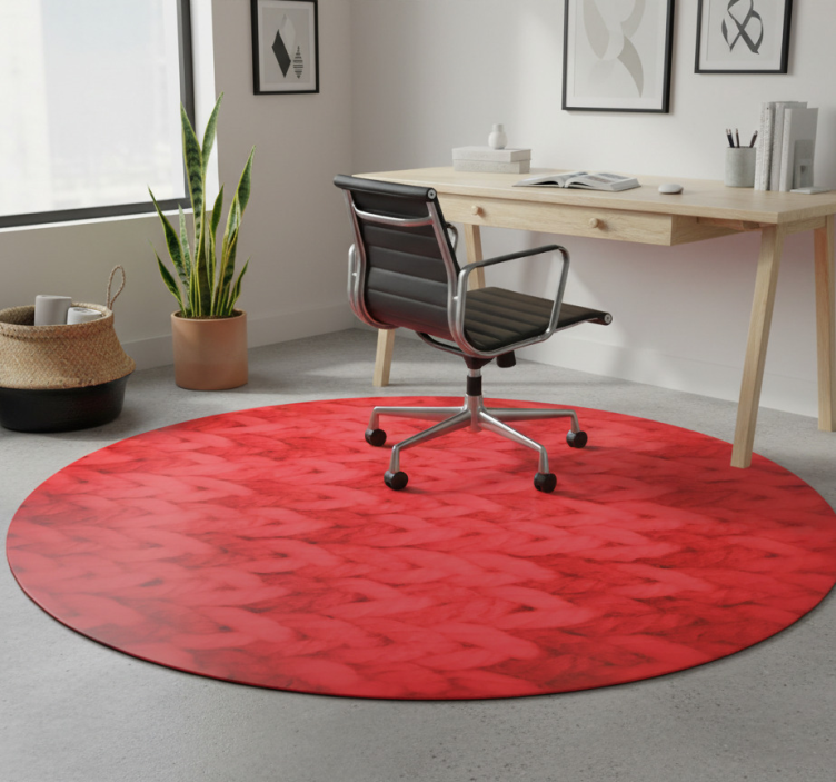 一个圆形设计,表面呈现出鲜艳的红色,具有纹理编织的图案。交错的线条营造出深度和视觉趣味,不同深浅的红色增添了层次感。整体外观令人愉悦,成为任何空间中引人注目的中心装饰。