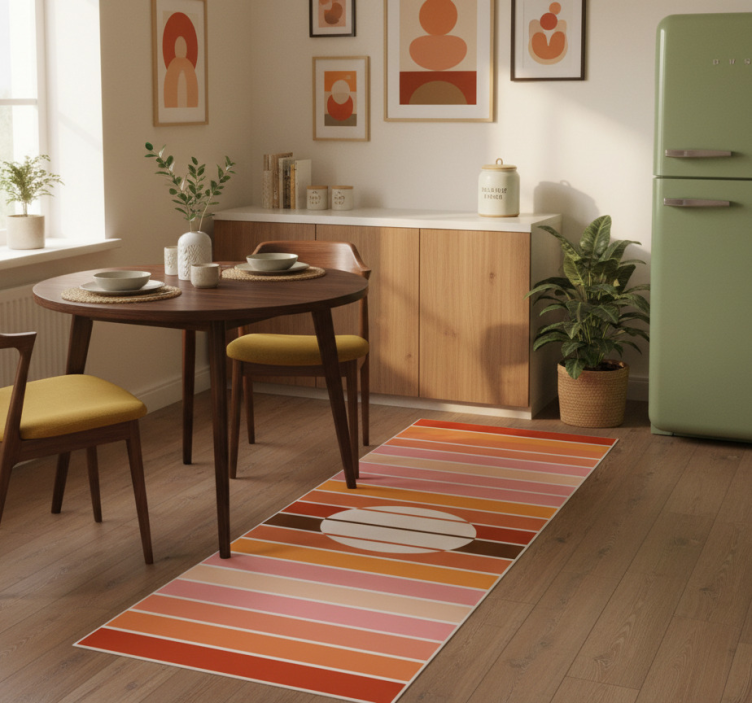 探索我们独特的乙烯基厨房地毯 70年代阳光冰箱,这款地毯的设计灵感源自充满活力的70年代,带有生动的色彩和复古的图案,仿佛将阳光洒满厨房。其优雅的外观不仅能提升家居的美感,还具备出色的实用性,适合各种厨房风格。