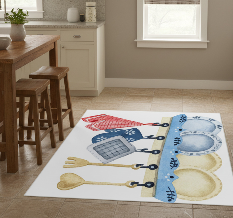 乙烯基厨房地毯手绘水彩厨房用具套装