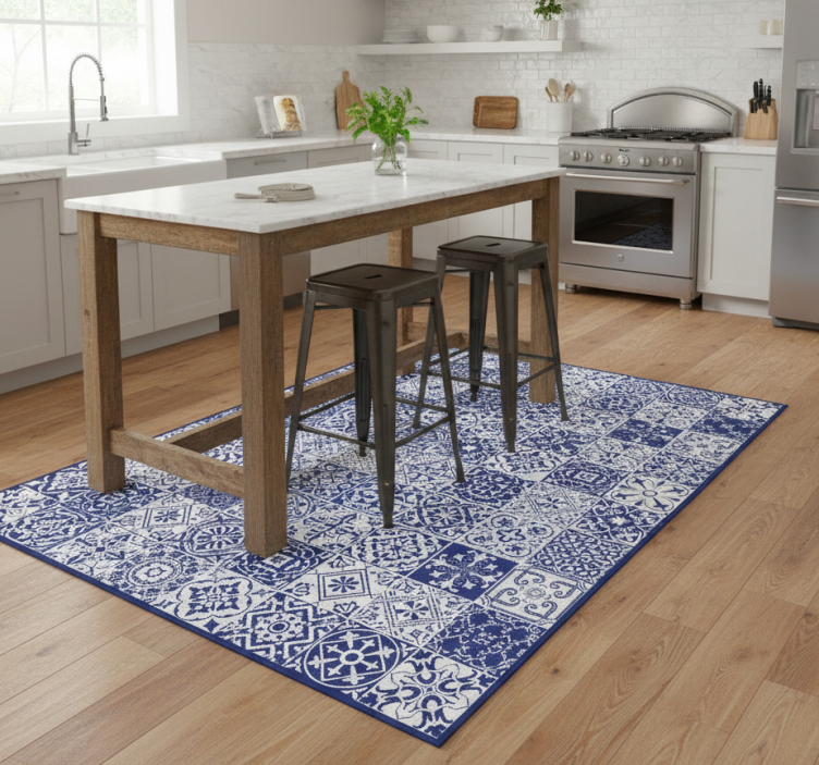 乙烯基厨房地毯 钴蓝瓷砖拼贴的魅力