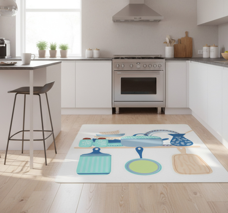 乙烯基厨房地毯与陶瓷炊具完美搭配