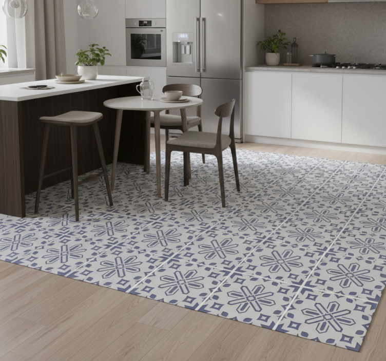 清洁乙烯基厨房地毯可爱蓝白水泥砖图案非常简单!您只需用湿布擦拭或使用温和的清洁剂即可去除污渍。无论是日常使用还是偶尔的食物溅落,这款地毯都能轻松应对,让您的厨房始终保持干净整洁。