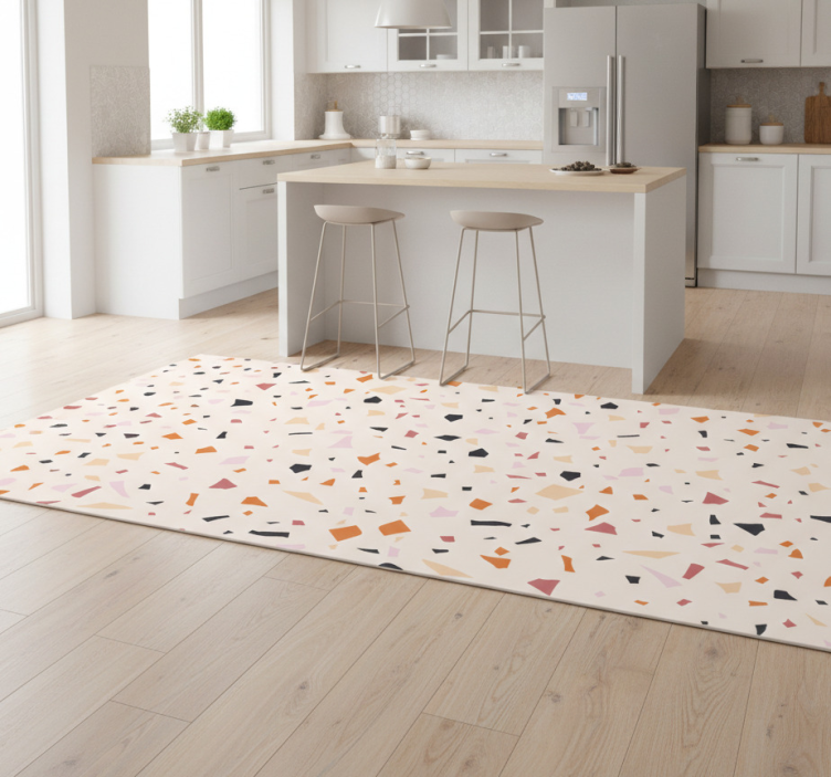维护乙烯基厨房地毯的清洁非常简单。只需用湿布擦拭即可去除污渍,保持乙烯基厨房地毯灰色水磨石板的光泽如新。定期清洁将延长地毯的使用寿命,让您的厨房始终保持干净整洁。