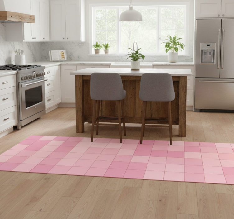 乙烯基厨房地毯粉色方形瓷砖的魅力