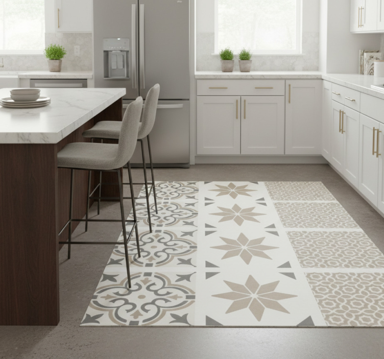 在我们的在线商店购买乙烯基厨房地毯砂岩摩洛哥马赛克,您将享受到优质的产品和无与伦比的服务。我们提供定制尺寸选择,确保它能完美适合您的空间。此外,我们的价格低而质量高,是您明智的选择!