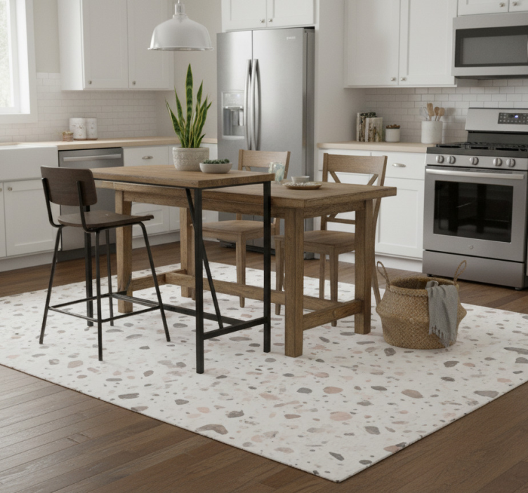 清洁乙烯基厨房地毯非常方便!只需用湿布轻轻擦拭,顽固污渍也能轻松去除,让您的地毯始终如新。它的耐污性能让您无需担心日常使用带来的脏污,轻松维护这款水磨石纹理设计的乙烯基厨房地毯,将让您的厨房始终保持洁净。