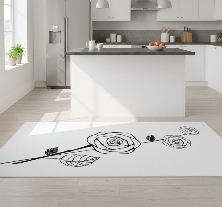 乙烯基厨房地毯乙烯基厨房地毯黑白玫瑰图案是您厨房装饰的理想选择。它不仅能够提升整体视觉效果,还能为您的厨房增添一丝温馨的氛围。黑白玫瑰图案的设计使其能够与各种风格的厨房完美融合,带来一种高雅的感觉。选择这款地毯,不仅是为了美观,更是为您的生活空间增添一份艺术气息,让每一次烹饪都成为一种享受!