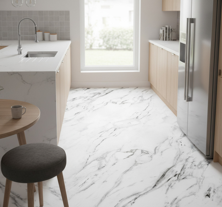 清洁乙烯基厨房地毯非常简单,只需用湿布轻轻擦拭,污渍瞬间去除!乙烯基厨房地毯白色大理石的防污特性使得日常维护变得轻松无比,您可以在家中轻松保持整洁。