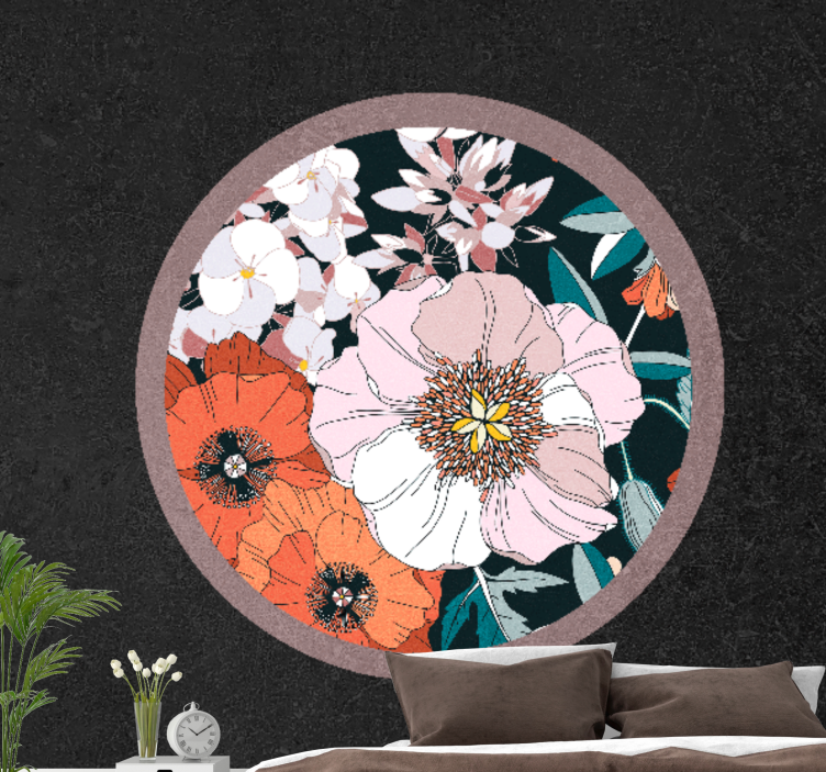 欢迎来到我们的花墙壁画圆形花卉设计!这款独特的设计包含了绚丽的花朵图案,生动的罂粟花环绕在优雅的圆圈内,展现出手绘插图的自然之美。每个细节都被精心描绘,仿佛将大自然的芬芳直接带入您的家中!
