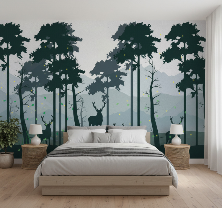 資訊 森林墙壁画轮廓森林斯堪的纳维亚