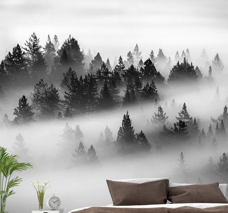 資訊 森林墙壁画:雾霭常青林