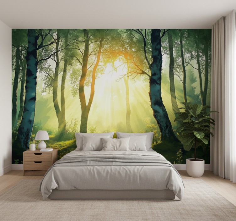 森林墙壁画:阳光普照的桦树壁画