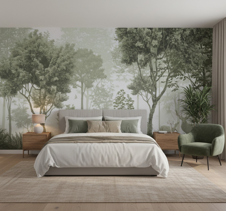 森林墙壁画带您进入宁静自然的避世之所