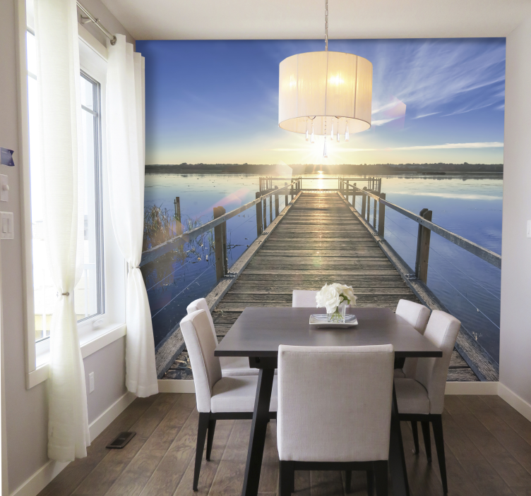 您可以轻松地将这款landscape wall mural 风景墙壁画:码头日落景观应用于各种墙面,只需使用胶水、滚筒或刷子进行涂抹。它的无纺布材质使得安装过程简单快捷,轻松点缀您的家居环境,增添一丝自然的魅力。