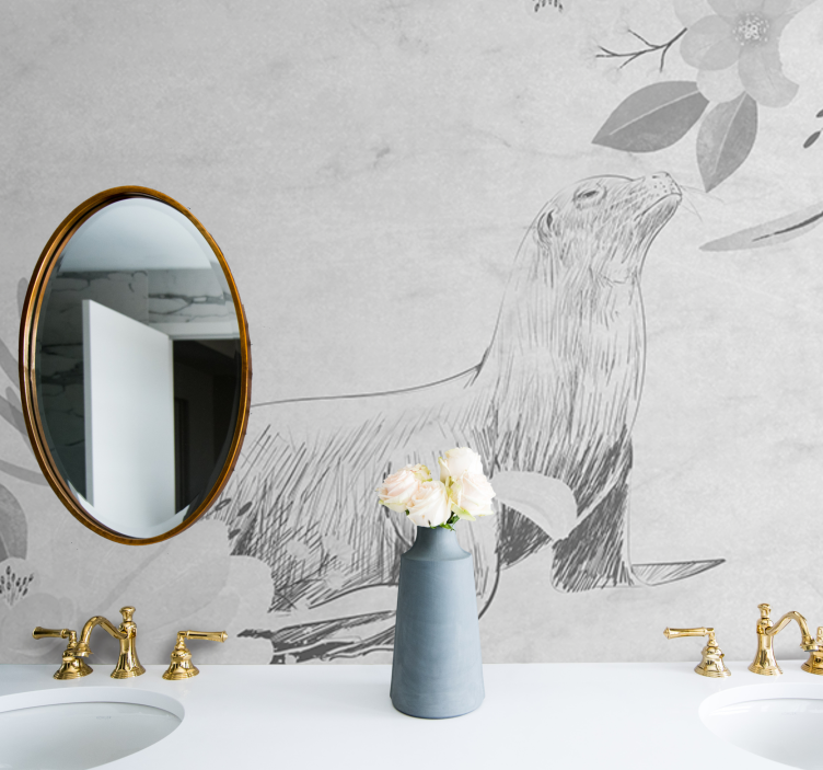 壁画浴室花间海豹