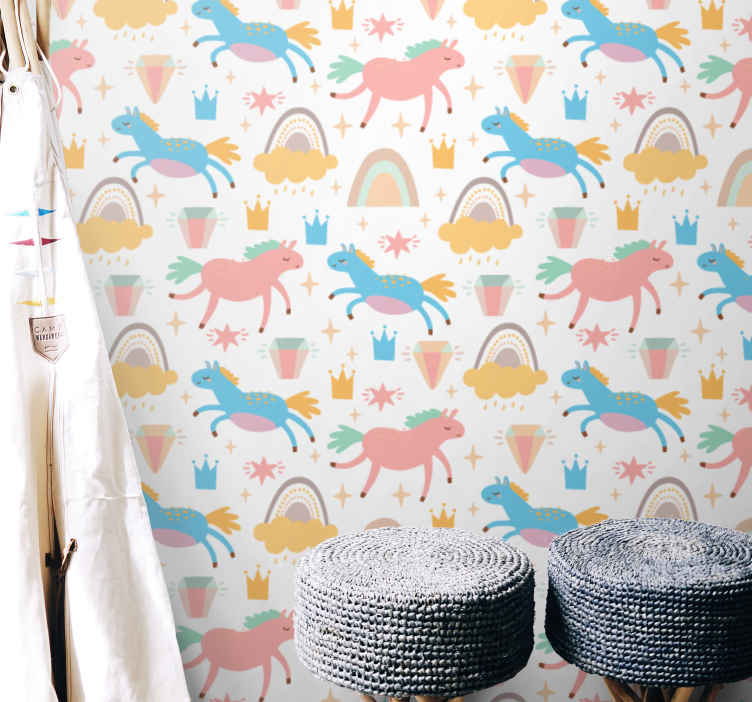 參考:: P3679使用这款美丽柔和的独角兽和彩虹图案壁纸为您的孩子打造一间美妙的卧室