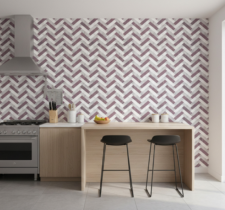 一种时尚设计,采用了交错的紫色、灰色和白色的人字纹图案。色彩的交融创造出动态的视觉效果,丰富了整体美感。这种几何图案强调了线条和角度,营造出现代感,同时确保在各种环境中都具备多样性。