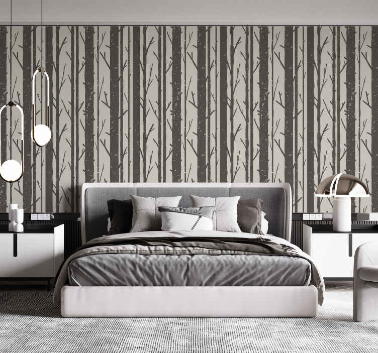 參考:: P6025在寒冷的冬季,床头板壁纸冬季树木将为您的卧室增添一丝自然的温暖。设计灵感来自于宁静的森林,生动的树干与树木交织在一起,展现出灰色的优雅与自然之美。这款壁纸不仅能营造出温馨的氛围,还能让每个夜晚都充满舒适与放松的感觉。